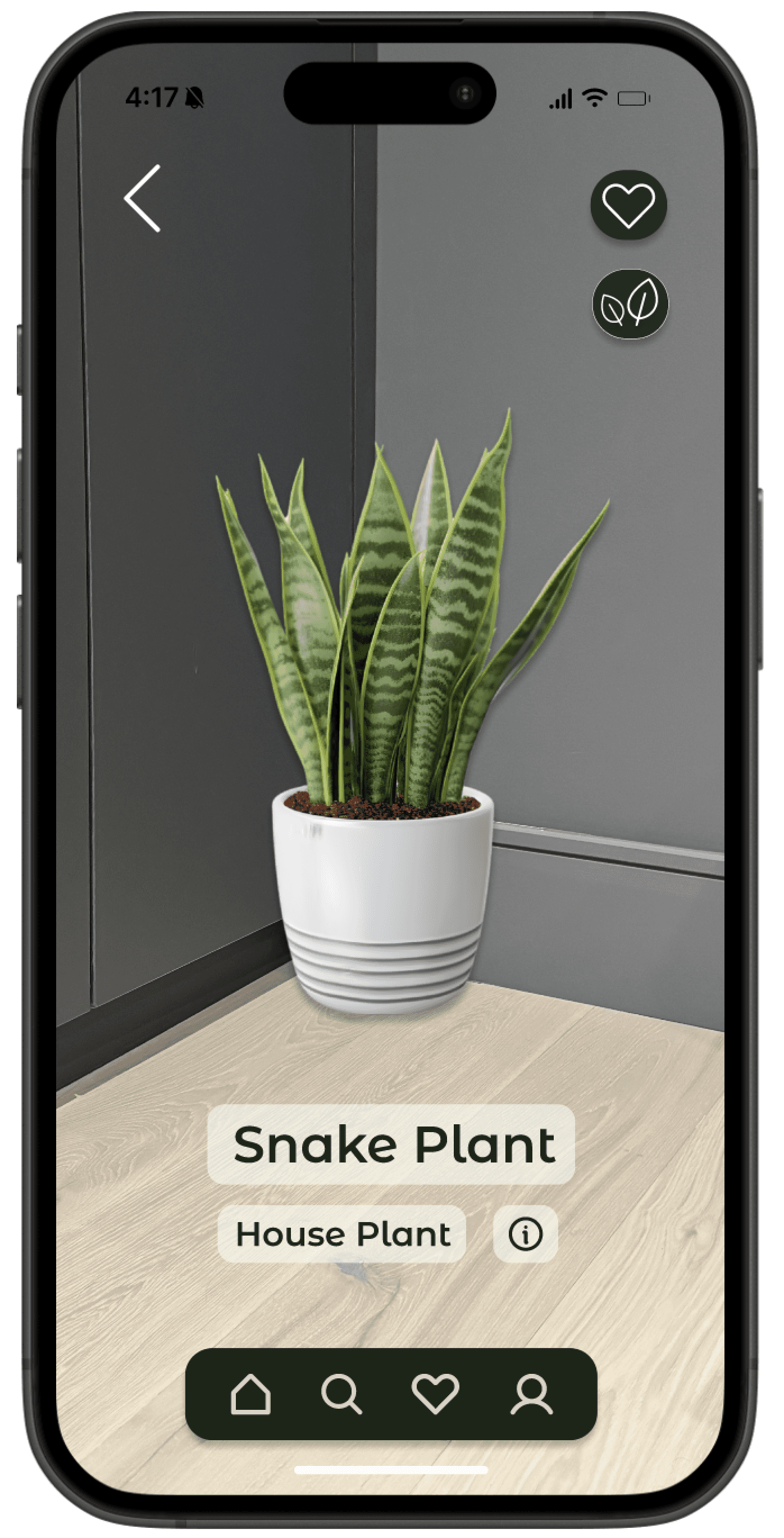 A concept and prototype for an AR experience that helps users preview plants in their space and access simple care guidance.